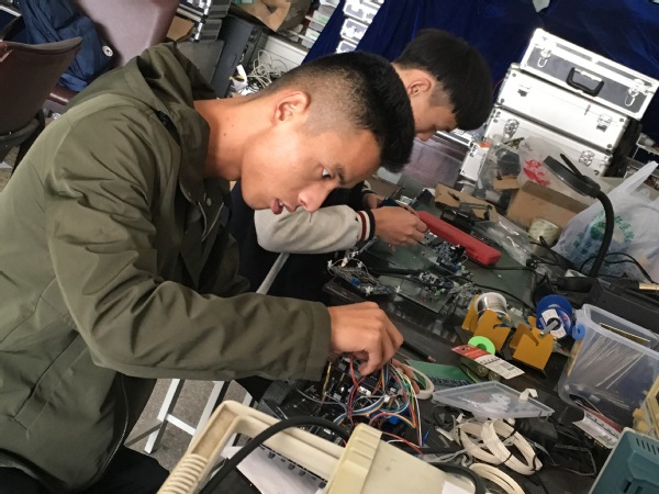 电路焊接时,十几个2mm左右大小的贴片元件,只能用镊子夹起来,找对正负极方向放在电路相应位置,考验的不仅是选手的眼力,还有他们的耐心和细心。