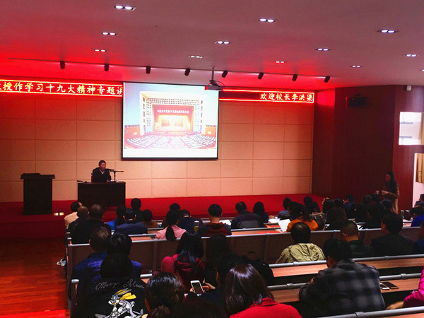 李洪渠从十九大召开的背景入题,对十九大报告进行领学,重点讲到十九大报告原文中的关键词“教育强国”、“教育现代化”、“办人民满意的教育”等。要求大家通过十九大报告了解当前职业教育的主导思想和主流声音,明确十九大对职业教育工作的要求,明确十九大对各级党组织、党员干部、党员的要求。他说,全体教职工不仅要知道十九大精神的要求,更要做到与党中央保持一致,自觉主动地把十九大精神贯彻到实际工作中。